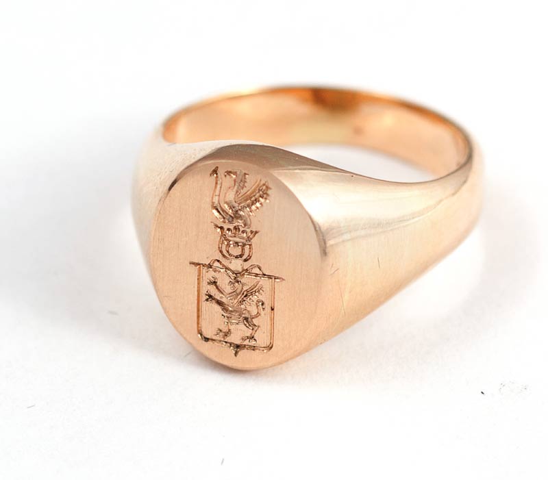 Wraz ze wzrostem zainteresowania genealogią i heraldyką wzrosło zapotrzebowanie na różnego rodzaju biżuterię ozdobioną elementami heraldycznymi. By temu sprostać w pracowni naszej wykonujemy srebrne i złote pierścienie oraz sygnety ozdobione herbami rodowymi. Oferujemy sygnety i pierścienie z herbami wklęsłymi grawerowanymi techniką intaglio, stanowiącymi jednocześnie tłoczniki do pieczęci lakowych. Herby wklęsłe mogą być wykonane bezpośrednio na czołach sygnetów i pierścieni, jak również na wprawianych w czoła kamieniach lub metalowych płytkach. Grawerujemy też ornamenty, monogramy i inicjały. Posiadamy bardzo duży wybór kamieni, mających odpowiednią jakość i trwałość (onyx,agat,karneol, heliotrop,hematyt ). Wyroby wykonujemy z kruszców własnych i powierzonych przez Klienta.
